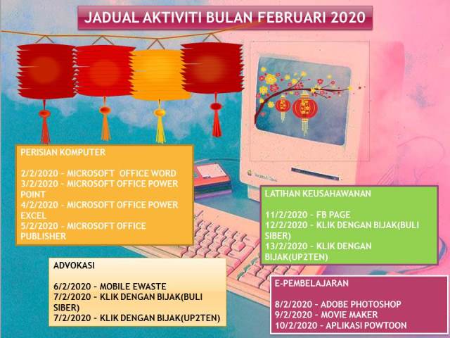 JADUAL AKTIVITI BULAN NOVEMBER 2019 TARIKH AKTIVITI TEMPAT 6/11/2019 PENGENALAN KOMPUTER+KUIZ BILIK LATIHAN PI1M KG PANTAI 6/11/2019 BENGKEL MICROSOFT OFFICE EXCEL BILIK LATIHAN PI1M KG PANTAI 6/11/2019 PENGENALAN ADOBE PHOTOSHOP BILIK LATIHAN PI1M KG PANTAI 8/11/2019 ASAS PENGENALAN BLOG (USAHAWAN) BILIK LATIHAN […]