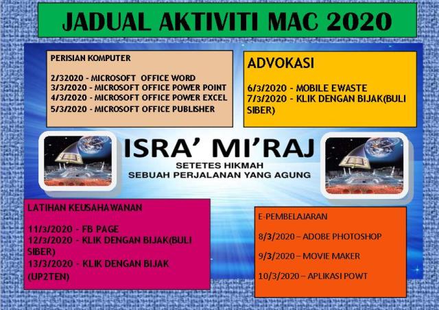 JADUAL AKTIVITI BULAN OKTOBER 2019 TARIKH AKTIVITI TEMPAT 2/10/2019 Bengkel Asas Penggunaan Mouse & Tetikus BILIK LATIHAN PI1M KG PANTAI 5/10/2019 Microsoft Excel BILIK LATIHAN PI1M KG PANTAI 7/10/2019 Adobe Photoshop BILIK LATIHAN PI1M KG PANTAI 8/10/2019 Kemahiran Hasilkan Kertas Kerja BILIK […]
